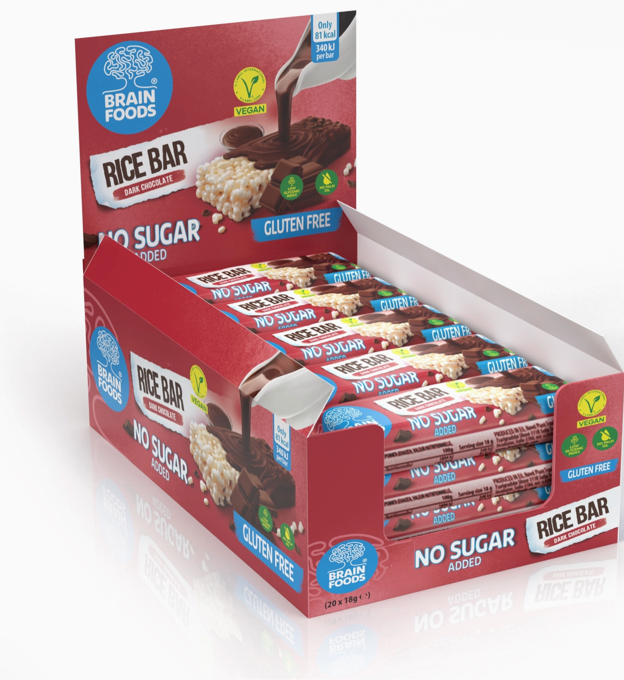 Klein, aber oho: Unser veganer Reisriegel mit dunkler Schokolade ist der ideale Snack für alle, die bewusst genießen wollen – ganz ohne Zuckerzusatz, glutenfrei und mit nur 81 Kalorien pro Riegel. Perfekt für unterwegs, im Büro oder als süßer Moment ganz für dich.
