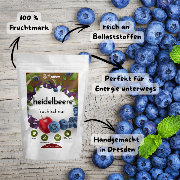 Verzehrempfehlung für die Heidelbeer-Fruchtschnüre von Fruitjunkies