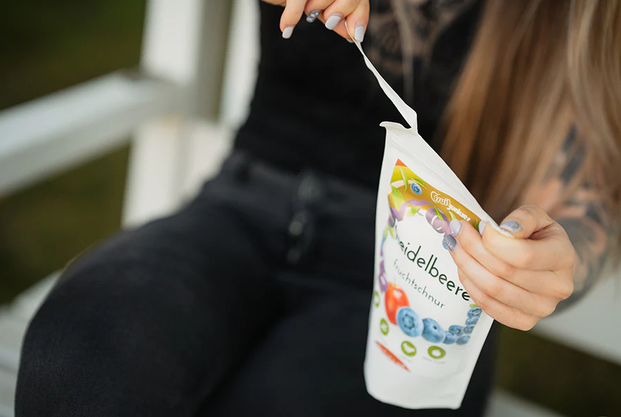 Die praktische, wiederverschließbare Verpackung aus recycelbarem Material macht die Fruchtschnüre zum perfekten Begleiter für unterwegs – ob beim Wandern, im Büro, in der Schule oder auf Reisen.