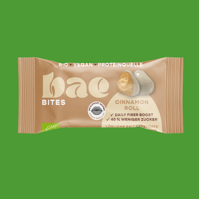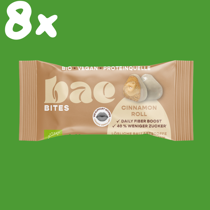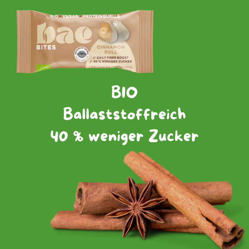Erlebe den unverwechselbaren Geschmack von Zimtschnecken in praktischen Bissen! Unsere Cinnamon Roll Bio-Bites sind gefüllt mit aromatischer Zimt-Mandelcreme, umhüllt von einer weichen Teighülle und überzogen mit feiner Schweizer Schokolade. 100 % bio, vegan und angereichert mit präbiotischen Ballaststoffen – für einen köstlichen Snack, der dich unterwegs oder zwischendurch mit wertvollen Nährstoffen versorgt. Weniger Zucker, mehr Genuss – handlich, nahrhaft und perfekt für jede genussvolle Auszeit.